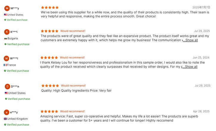 We carefully select premium raw materials worldwide, manufacture products in GMPC-compliant factories, implement strict quality control systems, and each product is inspected by a professional QA/QC team to ensure superior quality.