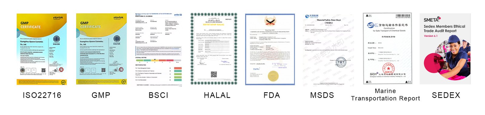 Trustworthy skin care suppliers, Our skincare factory has passed the following certifications to ensure that the manufacturing process meets the highest industry standards.